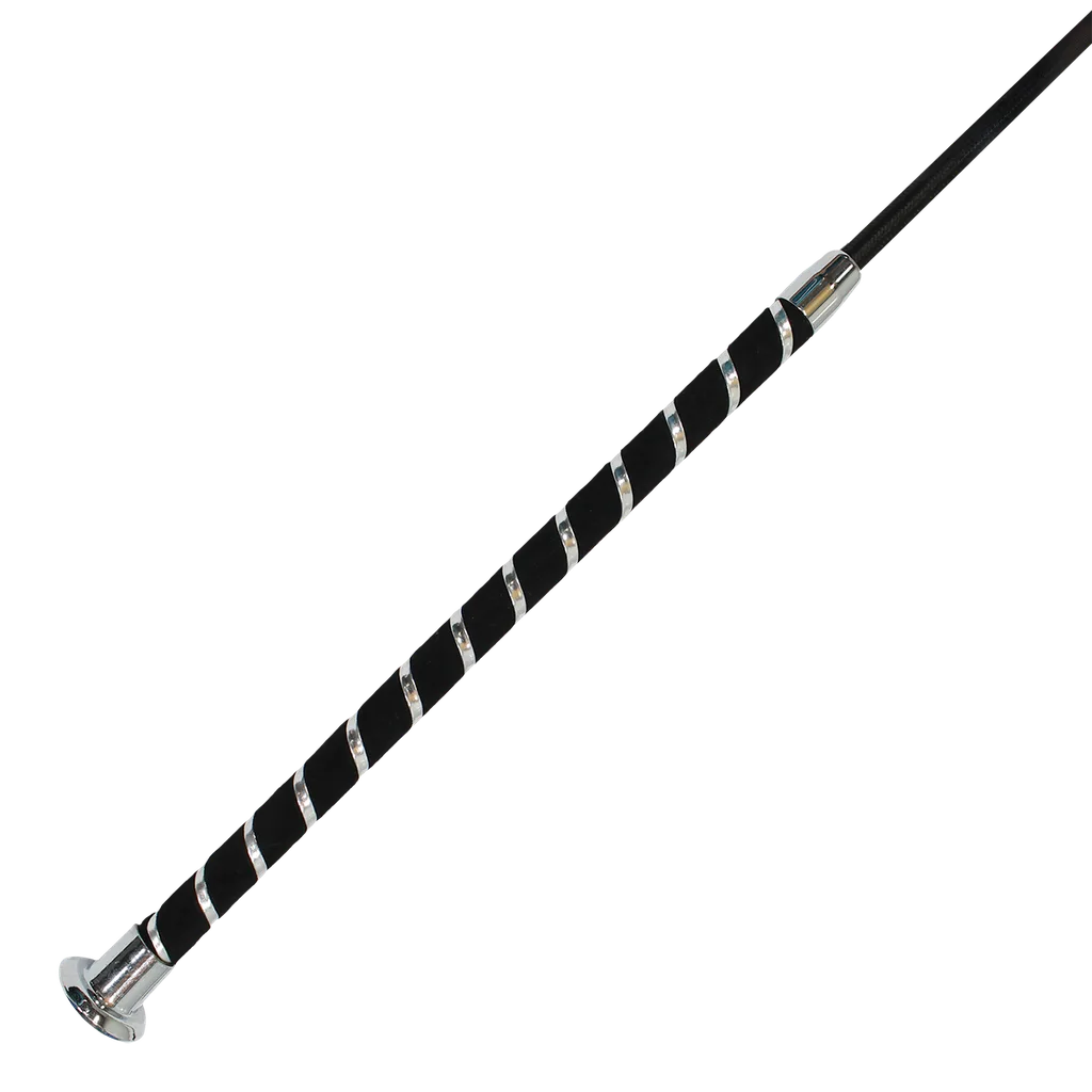 The Dressage Whip features a sophisticated silver spiral handle. This stylish riding whip combines elegance with functionality, offering a sleek, smooth grip enhanced by a finely crafted silver spiral inset. The spiral detail not only adds a touch of class but also ensures a comfortable and secure hold, giving riders greater control during training and competitions.