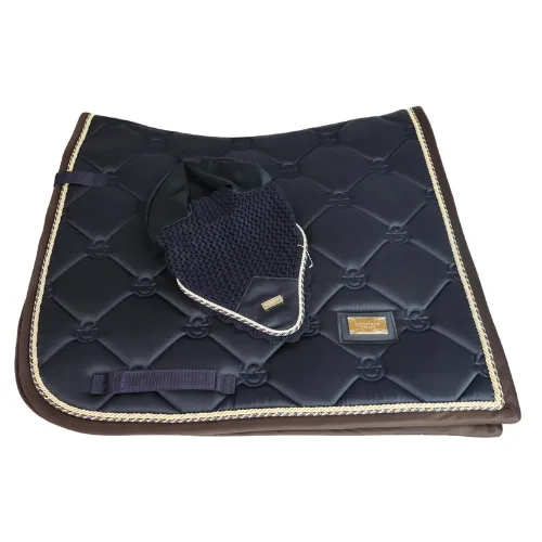 Equestrian Stockholm Royal Navy Dressage Saddle Pad & Ear Bonnet Full size