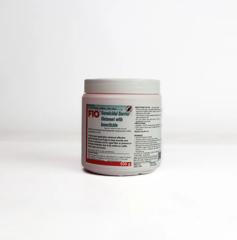 The F10 Germicidal Barrier Ointment with Insecticide is a versatile, broad-spectrum preparation formulated to combat a wide range of bacteria, fungi, and viruses.