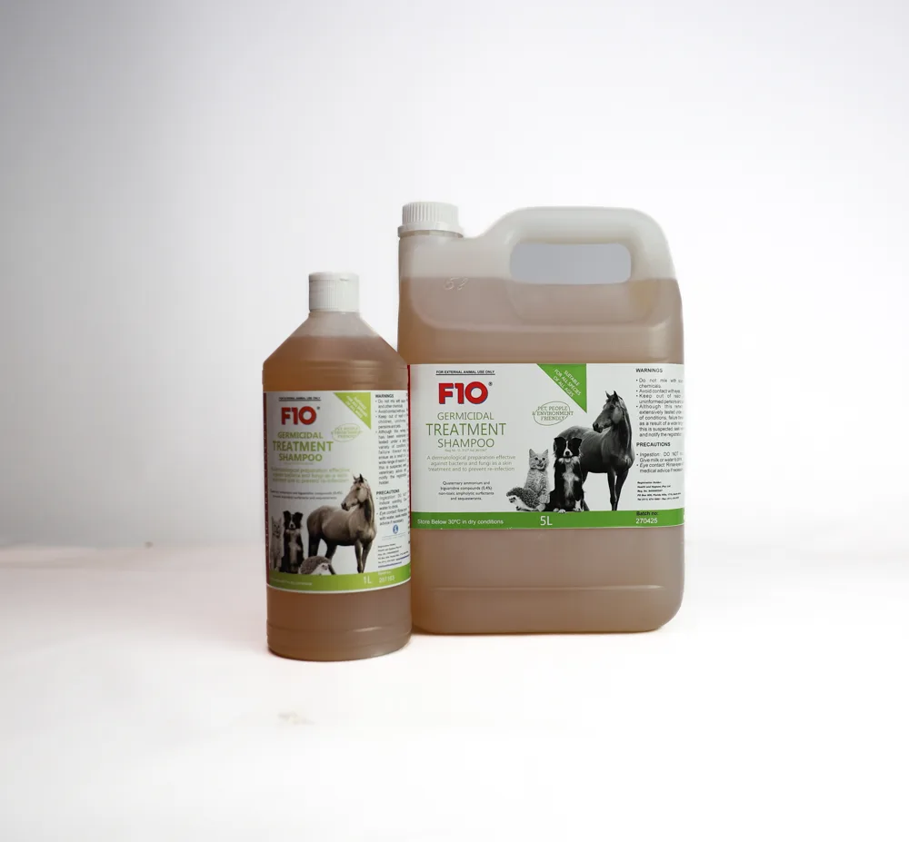 The F10 Germicidal Treatment Shampoo is a trusted dermatological solution for managing skin conditions of bacterial, fungal, or viral origin in dogs, cats, and horses of all ages.