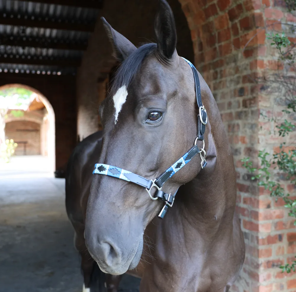 Hand-embroidered leather polo headcollar made from superior quality leather with meticulous craftsmanship.