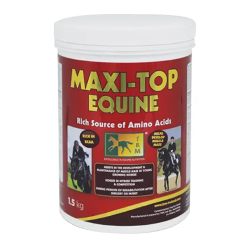 Maxi-Top Equine is a complementary feed for horses, designed to supply a significant source of Amino Acids, particularly Branch Chain Amino Acids, which will assist in the development and maintenance of muscle mass in horses in intense training and competition, in young growing horses, and during periods of rehabilitation after surgery or injury.